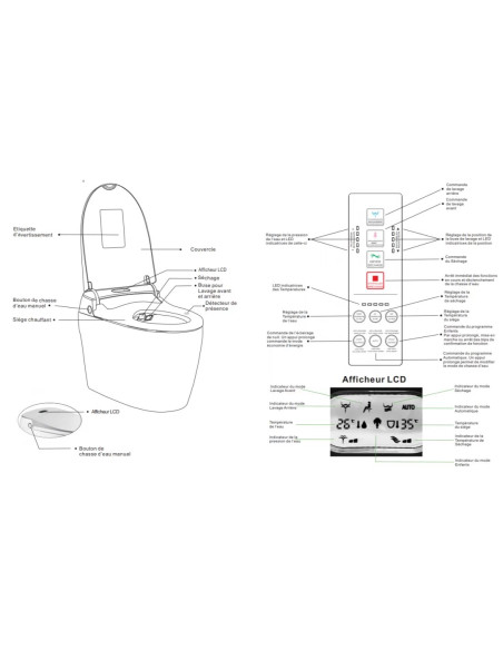 Température de l'eau, température du siège chauffant, température de séchage et pression de l'eau : autant de fonctionnalités qu'il est possible de régler selon votre convenance entre 3 et 4 niveaux.