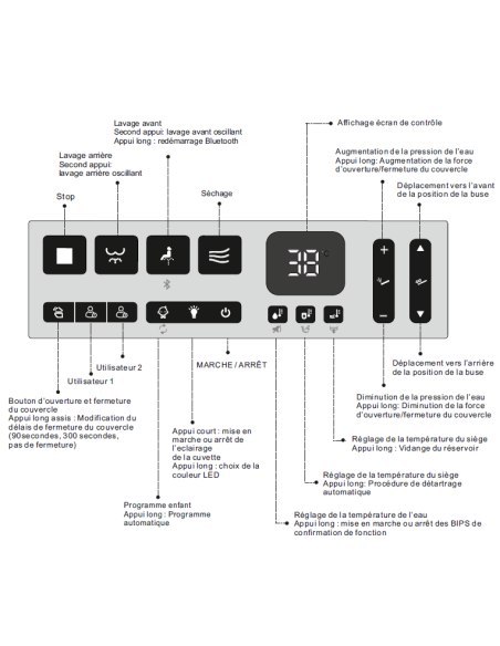 - Lavage précis à l'eau chaude : Buse autonettoyante antibactérienne avec double jet (avant et arrière), position et pression ajustables.